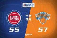 4月20日訊 NBA季后賽東部首輪G1,尼克斯半場57-55領(lǐng)先活塞。