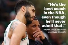 談到球隊(duì)主帥馬祖拉,塔圖姆說道:“他是目前NBA最好的教練,盡管他永遠(yuǎn)不會(huì)承認(rèn)?!?/p>