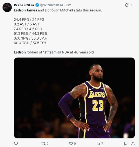 美媒還不滿米切爾搶了詹姆斯一陣,他曬出兩人數(shù)據(jù),詹姆斯場均24.4+8.2+7.4+命中率51.3%+三分命中率37.6%+真實(shí)命中率60.4%;