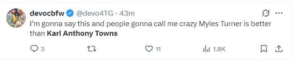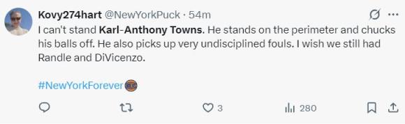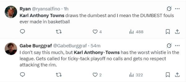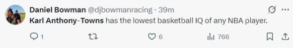 美球迷:卡爾-安東尼-唐斯是NBA球員中籃球智商最低的。