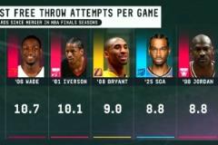 1998年 喬丹—場(chǎng)均罰8.8 次