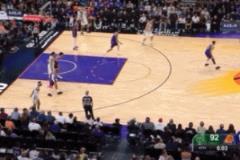 里弗斯提到的這個回合發(fā)生在第四節(jié)還剩5分56秒,大洛突理查茲打進,這個回合裁判吹罰布克卡位對波特犯規(guī),進球無效,之后庫茲馬三分沒進,太陽拿到籃板后轉(zhuǎn)入進攻,鄧恩投進3分,太陽98比92領(lǐng)先。