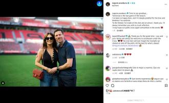 阿蘭布魯在社媒曬出與阿隆索的合影,配文寫道:“是時候說再見了,這是最后一場比賽了。我很高興曾來過這里,也很感激在這里獲得的愛心與善意。感謝我那些在俱樂部相識的朋友,我會永遠(yuǎn)記住你們。真心希望我們有朝一日能再度相逢。”