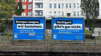 賽前,比勒菲爾德的宣傳負責人在柏林街頭張貼了宣傳海報,上面寫著“歐聯(lián)杯,我們來了”、“斯圖加特根本不存在”。
