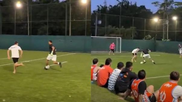 比賽地點(diǎn)位于其度假的海濱小鎮(zhèn)曼加拉蒂巴。在一座五人制球場上,人們看到他展現(xiàn)出嫻熟的控球技術(shù),以昔日的盤帶。