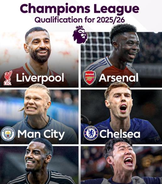 歐冠資格:利物浦、阿森納、曼城、切爾西、紐卡斯?fàn)枴岽蹋W聯(lián)杯冠軍)