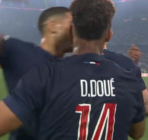 第20分鐘,杜埃又站了出來(lái),大巴黎反擊,登貝萊帶球殺到前場(chǎng)后傳中,杜埃接球調(diào)整,隨后一腳抽射,皮球擊中國(guó)米球員后變向飛進(jìn)大門,比分變?yōu)?-0。