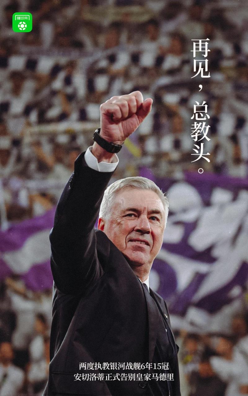 北京時(shí)間5月23日,皇馬官方宣布結(jié)束安切洛蒂的教練任期。此前,,北京時(shí)間5月24日主場(chǎng)迎戰(zhàn)皇家社會(huì)的比賽將成為安切洛蒂皇馬生涯的最后一戰(zhàn)。