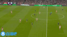 薩卡對陣?yán)锲值倪M(jìn)球。