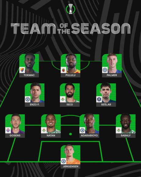 雷速體育5月30日訊 北京時(shí)間5月29日歐足聯(lián)官方宣布了本賽季歐協(xié)聯(lián)最佳陣容,切爾西4人入選,皇家貝蒂斯球員伊斯科在列。
