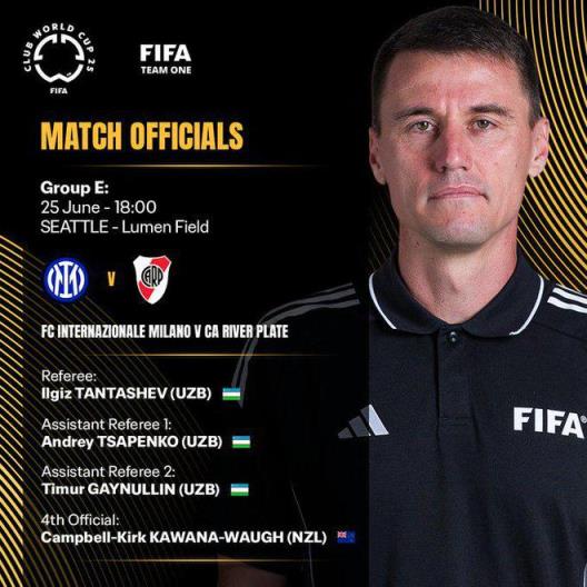雷速體育6月24日訊 2025世俱杯小組賽最后一輪出線生死戰(zhàn),國際米蘭對陣河床賽前,F(xiàn)IFA官方公布了本場比賽的裁判組選派,將由烏茲別克斯坦主裁塔甘舍夫領(lǐng)銜的裁判組執(zhí)法本場比賽。