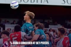 據(jù)Opta統(tǒng)計(jì),阿森納本賽季英超38.7%的失球來自于定位球,本賽季英超球隊(duì)定位球失球占比最高。