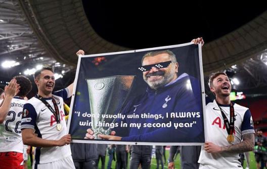 賽后,熱刺球員麥迪遜和雷吉隆舉起了印有波斯特科格魯捧著歐聯(lián)冠軍獎杯的旗幟,上面寫著波斯特科格魯之前說過的那句話。