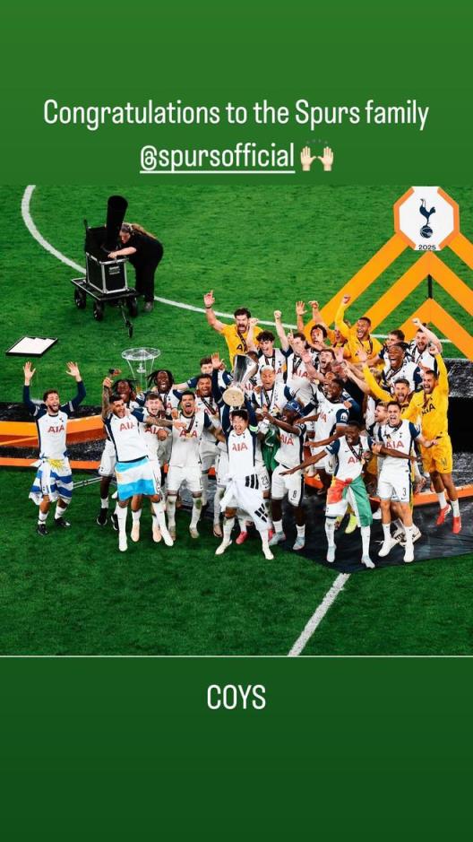 在熱刺奪得2024-25賽季歐聯(lián)杯冠軍后,前主帥波切蒂諾通過(guò)社交媒體送上祝賀。