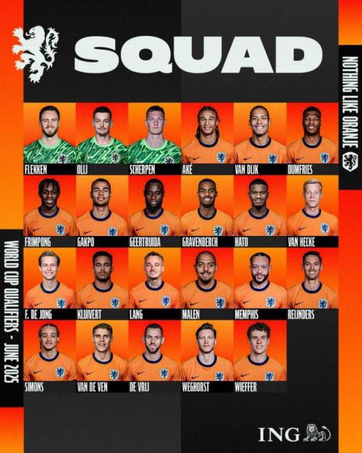 荷蘭國家隊6月份名單: