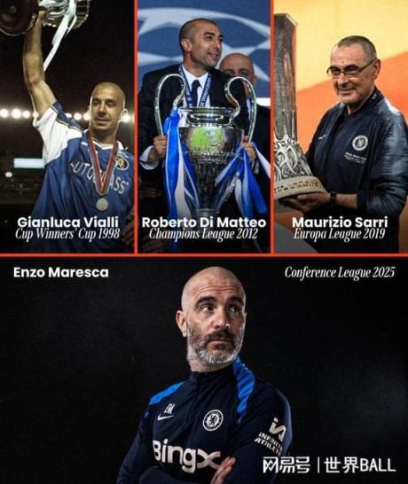 馬雷斯卡也繼承了意大利籍主教練在切爾西的冠軍傳統(tǒng),繼詹盧卡-維亞利(優(yōu)勝者杯,1998)、羅伯特-迪馬特奧(歐冠,2012)、毛里西奧-薩里(歐聯(lián),2019)之后,第四位率領(lǐng)切爾西問(wèn)鼎歐戰(zhàn)冠軍的意大利教練。加上安切洛蒂和孔蒂,意大利人和切爾西可謂相互成就。