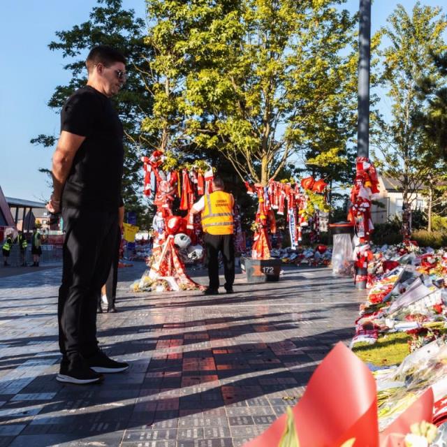 杰拉德與史蒂文-杰拉德足球學院的球員在安菲爾德主看臺外的紀念點獻上了鮮花。